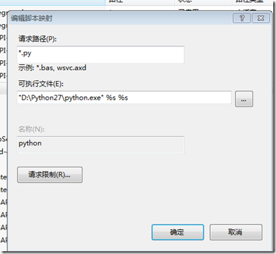 1. 從Python下載windows版本的安裝程序(點(diǎn)擊進(jìn)入),我這里由于操作系統(tǒng)是x64的因此選擇Python 2.7.11 x64 Installer ~2. 安裝,這里建議不要安裝到系統(tǒng)盤,以免重做系統(tǒng)后再次安裝~3. IIS7.5->ISAPI和CGI限制->右鍵添加->ISAPI或CGI路徑選擇Python文件夾下的python.exe %s %s;描述中填寫:python。4.IIS7.5->處理程序映射->添加腳本映射->請求路徑:*.py->可執(zhí)行文件:選擇Python安裝的文件路徑并選中python.exe %s %s->名稱:python5.添加新的應(yīng)用程序池->名稱為python,無托管代碼6.建立新的web應(yīng)用程序:默認(rèn)站點(diǎn)->右鍵添加應(yīng)用程序->別名tesstPy,應(yīng)用程序池選擇python,物理路徑例如:D:/Python/test,確定.至此部署完成,我們來測試一下效果如何,在D:/Python/test下建立index.py:1. 在IIS的根目錄下點(diǎn)擊"處理程序映射".