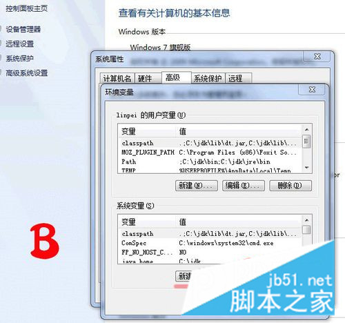 2)請根據圖A所示選擇環境變量,將彈出圖B所示的窗口