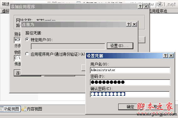 在II7種部署WCF服務,在“應用程序”頁中點擊右側的“添加應用程序”項,添加完內容后,點擊“測試設置”時報出如下異常: