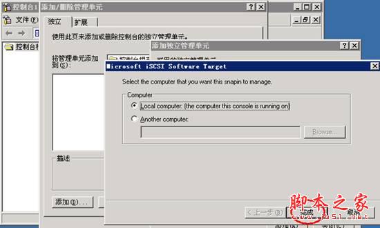 3. 安裝完成后,打開mmc控制臺,添加管理單元。選擇Microsoft iSCSI Software單元。