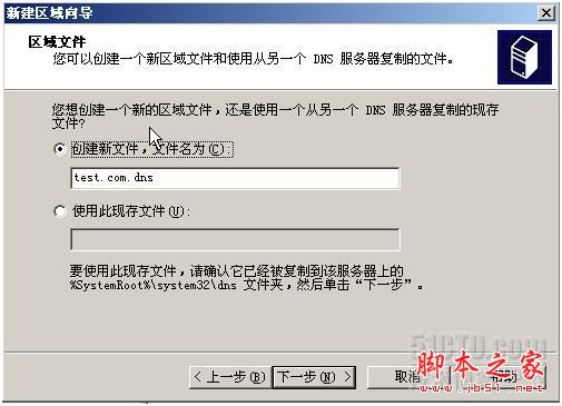6 填入?yún)^(qū)域名稱 (如果網(wǎng)絡(luò)中的服務(wù)器要使用的完整域名是“www.test.com”,則在區(qū)域名稱中填入“test.com”)