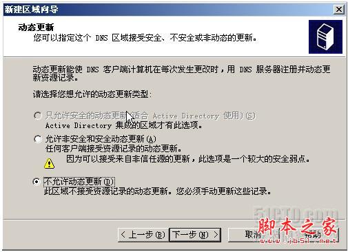 8 在彈出的窗口中可以選擇是否接受動態(tài)更新,如果對安全要求不高,可以選擇【允許非安全和安全動態(tài)更新(A)】,本實驗選【不允許動態(tài)更新】