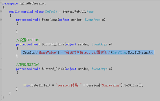 其中 有二個Button ,SetSession 主要是用于給一個 Session 賦值(如:Session["ShareValue"] = “abcd”) ,