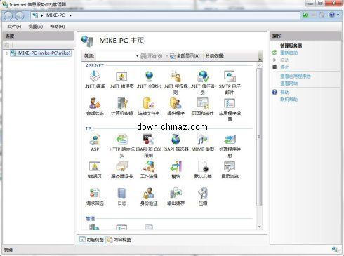 二、配置IIS71、IIS7 在安裝了上述組件后,控制面板-系統(tǒng)和安全-管理工具-Internet信息服務(wù)(IIS)