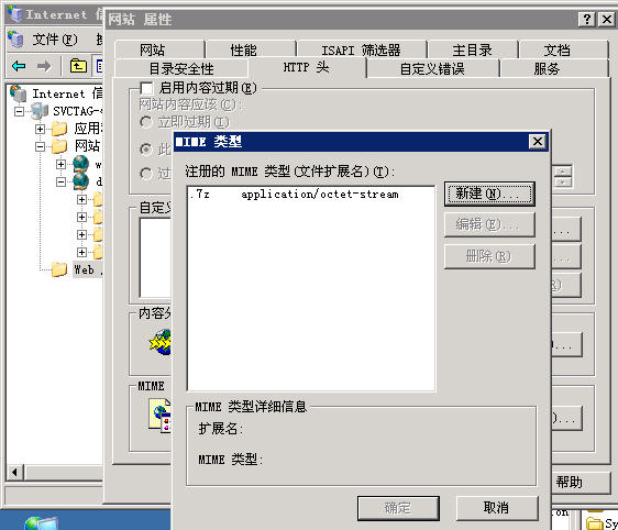擴展名:.7z(注意前面有個點) MIME類型:application/octet-stream其于的 .iso 或是 . torrent 都可以這么添加