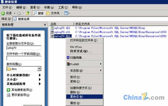 4、安裝好SQL后進(jìn)入目錄搜索 xplog70 然后將找到的三個(gè)文件改名或者刪除。