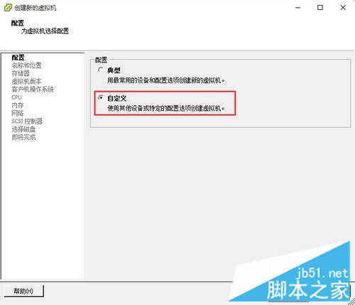 在彈出來的“創建新的虛擬機”窗口中在配置選項中選擇“自定義”選項,然后點擊“下一步”按鈕。