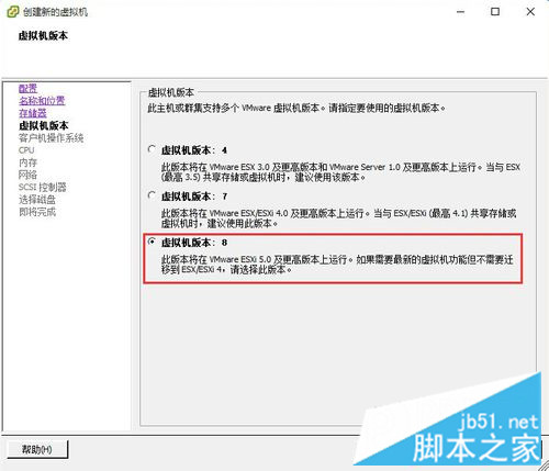 進入“虛擬機版本”界面,選擇虛擬機版本,一般都選擇最高版本,如果是有特殊需求或兼容可以選擇其它版本,然后點擊“下一步”按鈕。
