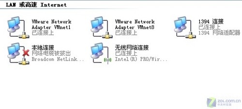 安裝了VMware虛擬機后,會在網絡連接對話框中多出兩個虛擬網卡,如圖:
