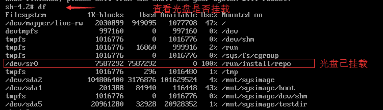 9、查看光盤是否掛載、如若沒有掛載,首先掛載光盤