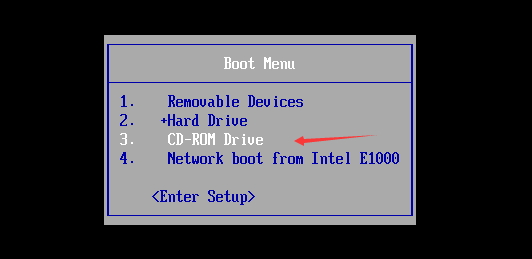3、再次重啟,出現進度條時按下Esc鍵,出現如下界面,選擇從光盤啟動