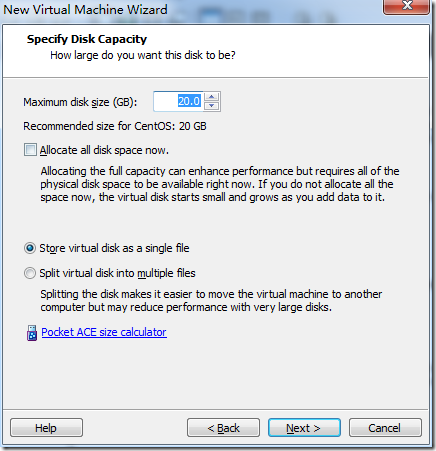 選擇給虛擬機分配的cpu核的數量,如果為虛擬機選擇的cpu數超過本機實際cpu數量,vmware會給出警告。Next: