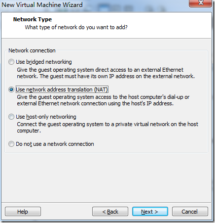 2 NAT:使用vmnet8,主機開啟必要的vmware服務,如vmvare dhcp,虛擬機設置成dhcp方式即可,當然也可以手工設置成vmnet1同一網段,比較麻煩