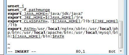 cp /etc/profile /etc/profile.bak #備份vi /etc/profile #編輯,在最后添加下面的內容export JAVA_HOME=/java/jdk/java7export JRE_HOME=${JAVA_HOME}/jre export CLASSPATH=.:${JAVA_HOME}/lib:${JRE_HOME}/lib export PATH=${JAVA_HOME}/bin:$PATH