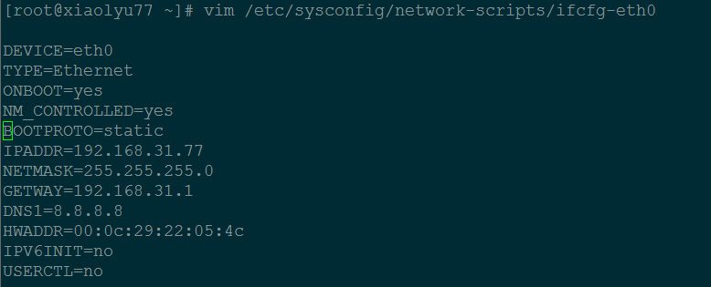 vim /etc/sysconfig/network-scripts/ifcfg-eth0