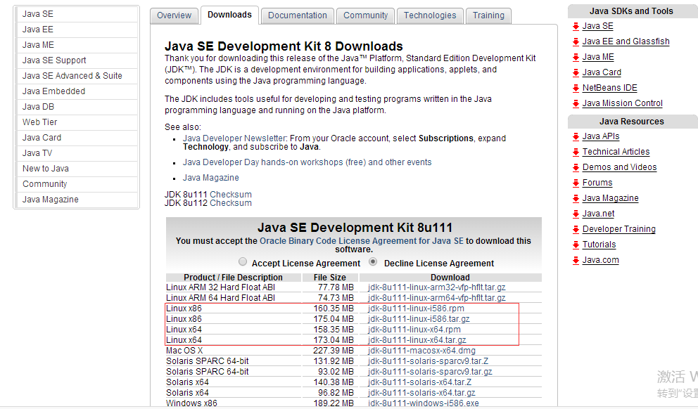 ①jdk官網(wǎng)http://www.oracle.com/technetwork/java/javase/downloads/jdk8-downloads-2133151.html下載Linux上使用的jdk