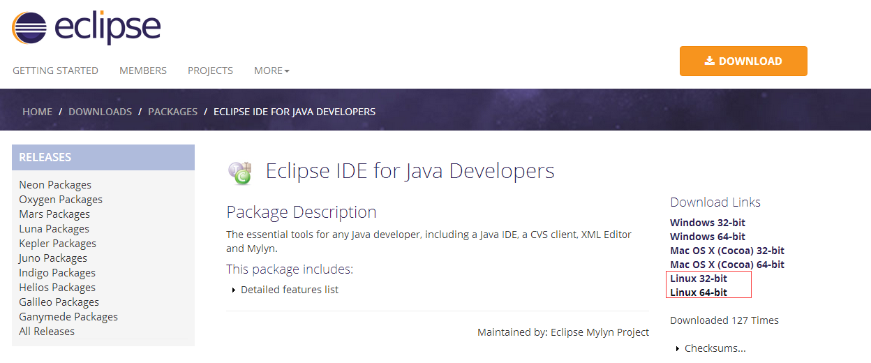 ②eclipse官網(wǎng)http://www.eclipse.org/downloads/packages/eclipse-ide-java-developers/heliossr1/下載Linux上使用的eclipse