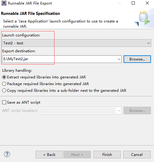 例如,此處將test工程中的Test2文件export為MyTest2.jar文件