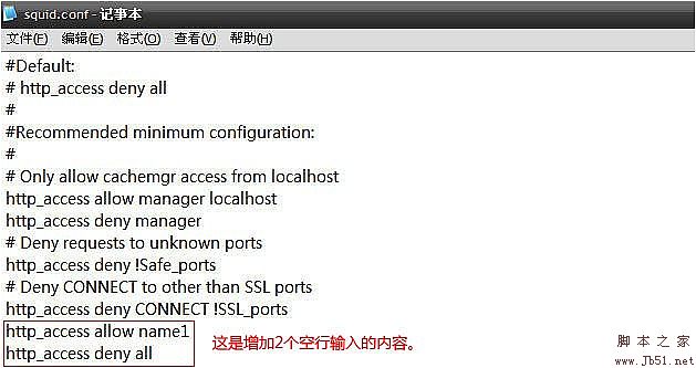 5)再按Ctrl+F輸入http_access deny CONNECT,回車,找到查找內(nèi)容。在SSL_ports后按回車增加2個(gè)空行,輸入內(nèi)容請(qǐng)看下圖所示。