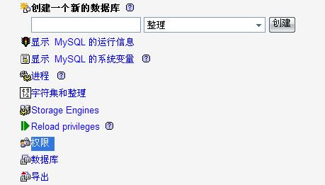 4、在主界面的右邊點擊“權限”來創建數據庫帳號。