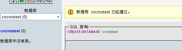 例如我們這里創建一個名字為:cncmstest 的數據庫 創建成功會有如下提示:
