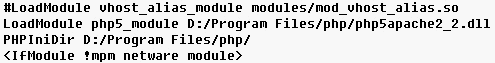 http://windows.php.net/downloads/releases/php-5.3.1-Win32-VC9-x86.zip Apache http://apache.freelamp.com/httpd/binaries/win32/apache_2.2.14-win32-x86-openssl-0.9.8k.msi Mysql http://mysql.mirror.tw/Downloads/MySQL-5.5/mysql-5.5.0-m2-win32.msi 1. 安裝Apache 2. 解壓php到一個目錄 3. 安裝Mysql 4. 配置Apache文件,找到Apache Software Foundation/Apache2.2/conf目錄下httpd.conf文件,Ctrl+F找到htdocs,將此路徑指向程序運行的目錄(網站目錄)。一共有兩處。 5. 打開php安裝目錄,編輯配置文件(如果是開發則是php.ini-development)php.ini-production,如下設置: (1)register_globals = On (2)extension=php_mysql.dll (3)根據需要模塊,適當的選擇 6.結合Apache和Php (1)打開apache的配置文件,http.conf。 (2)找到這個大約這個位置