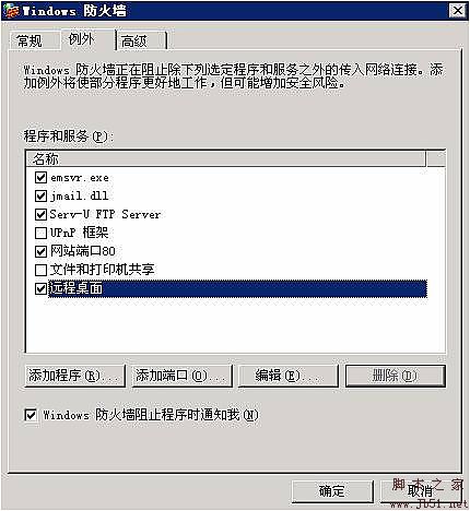 3.啟用windows自帶防火墻,只保留有用的端口,比如遠程和Web,Ftp(3389,80,21)等等,有郵件服務器的還要打開25和130端口.