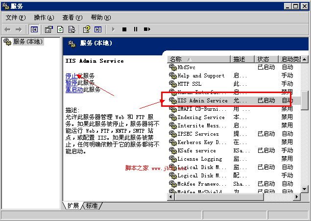 注意:“X”為系統盤的盤符,在執行第二步之前請確保第一步已經操作,否則將無法保存修改后的“MetaBase.xml”文件。 第四步:開啟“IIS Admin Service”服務 修改完成后再按照第一步的操作將“IIS Admin Service”服務開啟。 如果不行,可以通過重啟 開始--運行--iisreset /restart 重啟iis即可。 經過以上簡單的三步設置我們已經將IIS上傳文件的大小限制改為了100M,當然你可以隨意對上傳文件的大小進行修改。 注:本實例的操作環境為Windows 2003、IIS6.0,其他操作系統下設置類似。