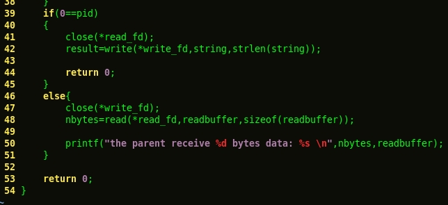 返回值:成功,返回0,否則返回-1。參數數組包含pipe使用的兩個文件的描述符。fd[0]:讀管道,fd[1]:寫管道。