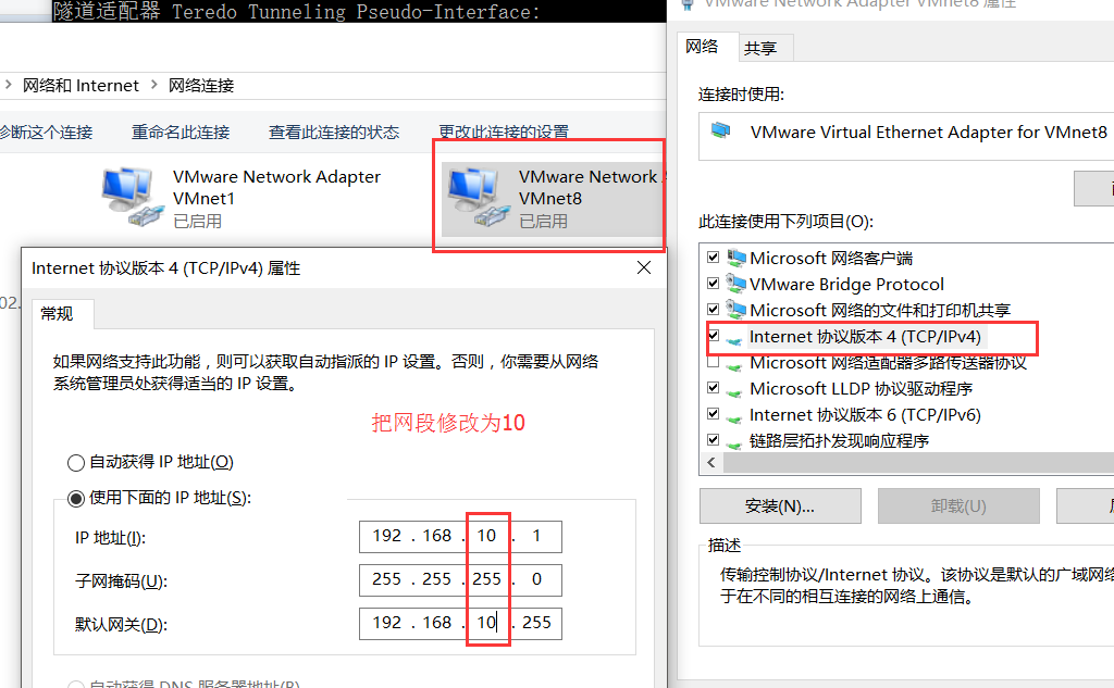 PS: 現修改物理主機網段為10,使其與虛擬機不同。