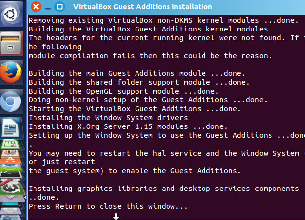 今天在使用Virtualbox中的Ubuntu虛擬機,想安裝增強功能來實現更改分辨率,但是在安裝時出錯:未能加載虛擬光驅 VBoxsGuestAdditions.iso到虛擬電腦