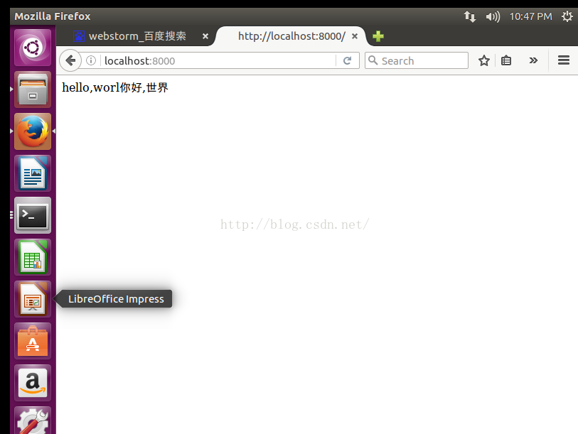 var http = require('http'); http.createServer(function (request, response) { response.writeHead(200, {'Content-Type':'text/html;charset=utf-8'}); if(request.url!=="/favicon.ico"){ console.log('訪問'); response.write('hello,world'); response.end('你好,世界'); } }).listen(8000); console.log('Server running at http://127.0.0.1:8000/');