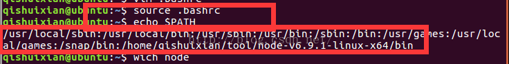 6、在終端輸入source .bashrc按回車鍵,再輸出路徑:echo $PATH檢查路徑是否已經添加成功