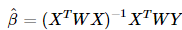 表示的就是第i個樣本在回歸里的權重,從上式可以看出來,具有較大權的樣本具有較小的方差,它在回歸問題里顯得更加重要。 不妨用W來表示權重矩陣,那么=W,這時我們用廣義最小二乘的方法來求系數的估計,即最小化廣義殘差平方和