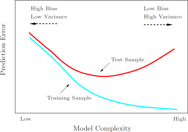 可以看到,當k越小時,擬合的效果越好,但是我們擬合的目的在于預測,需要避免過擬合的問題,這時候需要做Bias/Variance Trade-off:
