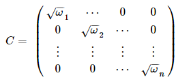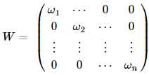 加權最小二乘法,就是對上述的Σ取一種特殊的矩陣--對角陣,而這個對角陣的對角元都是常數,也就是權重的倒數,如下: