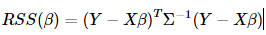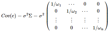 實際上,Σ也常常是未知的,但當我們知道Σ的某種形式時,我們可以去估計它。舉個例子,如果出于某種原因,我們樣本的數據來源的地方不一樣,怎樣把他們整合在一起呢,我們可以假設那些來源相同的數據樣本的殘差項方差是一樣的,如: