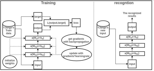 基本流程圖:下面就結合圖簡單瀏覽一下訓練和識別過程,并描述各個部分的作用。要結合圖解閱讀以下內容。但手機顯示的圖過小,最好用電腦打開。