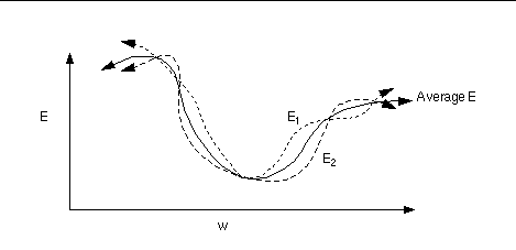 計算梯度:從loss開始反向傳播計算每個參數(parameters)對應的梯度(gradients)。這里用Stochastic Gradient Descent (SGD) 來計算梯度,即每次更新所計算的梯度都是從一個樣本計算出來的。傳統的方法Gradient Descent是正向傳遞所有樣本來計算梯度。SGD的方法來計算梯度的話,loss function的形狀如下圖所示會有變化,這樣在更新中就有可能“跳出”局部最小值。更新權重:這里用最簡單的方法來更新,即所有參數都