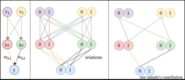 注:選擇這種XOR這種簡單關聯的初衷是輸入和輸出空間狀態的個數有限,易于分析變體個數和熵增的關系。