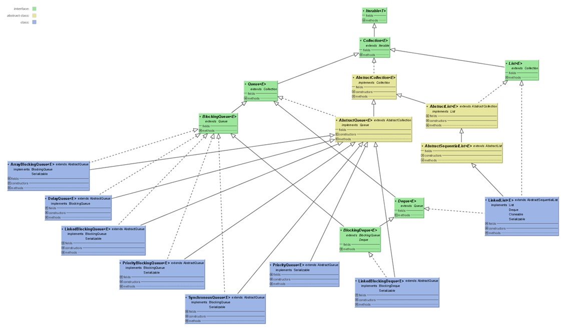 除了并發(fā)應(yīng)用,Queue僅有的兩個實(shí)現(xiàn)是LinkedList和PRiorityQueue, 其中LinkedList同時實(shí)現(xiàn)了List, Deque接口。它們的差異在于排序行為而不是性能。