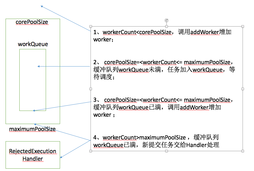 調用execute將會根據線程池的情況創建Worker,可以歸納出下圖四種情況: