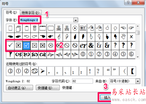 2、在符號窗口的字體中選擇Windings32,拉動滾動條就可以找到對鉤的符號,選中之后點擊插入就可以了。