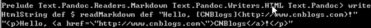 上面的代碼中readMarkdown與writeHtmlString是pandoc中的函數,newString的作用是將String轉換為IO CString。