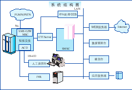 ACD和G/IW MSC采用華為公司的C&C08_Q智能交換機做為交換與七號信令的接入設備; 短消息調度中心SMSC,處理短消息的提交、存儲、下發(fā)、定時重發(fā)等; 呼叫處理服務器CCS,是人工/自動秘書臺的話務呼叫控制部件; | ![]() |