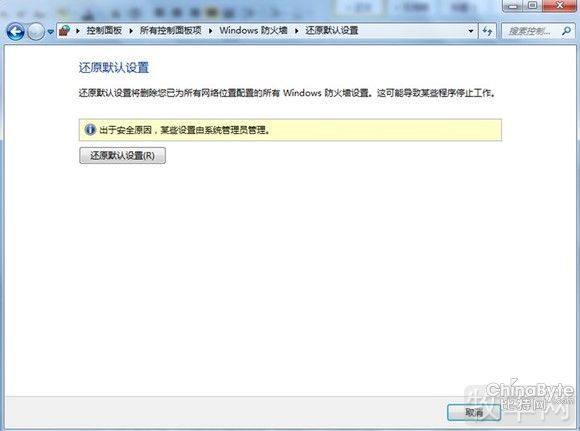 Win7新手用戶盡可放心大膽去設置,就算操作失誤也沒關系,Windows 7 系統提供的防火墻還原默認設置功能可立馬幫你把防火墻恢復到初始狀態。