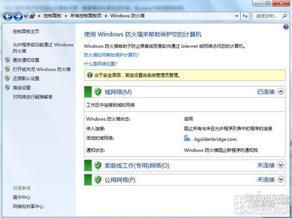 如此一來,Windows 7 的防火墻設置就搞定了。目前國內很多電腦用戶由于缺乏電腦安全知識同時又沒有安裝專業可靠的安全軟件,僅僅一些免費的殺毒軟件是不提供防火墻保護功能的,現在使用Windows 7 系統自帶的防火墻便可以為自己的系統增加一層保護,有效抵御網絡威脅