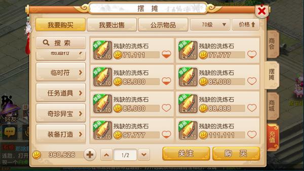 目前筆者所在服務(wù)器,60~70級(jí)殘缺的洗煉石價(jià)格普遍在10萬金以下,而80級(jí)則為30萬左右??梢越o玩家做一下參考。