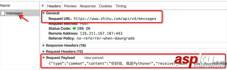請(qǐng)求URL是 https://www.zhihu.com/api/v4/messages ,請(qǐng)求方法是 POST,請(qǐng)求體