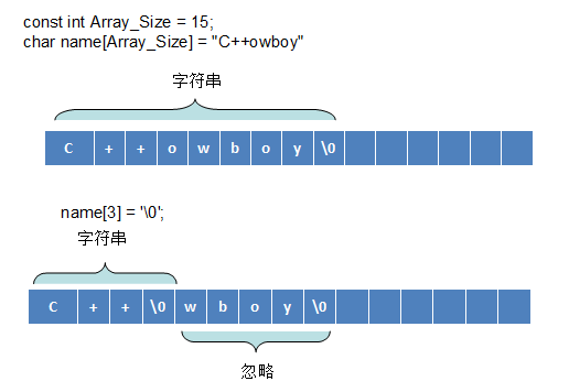 數組可以用索引來訪問數組的各個字符,例如name[0]找到數組的第一個字符,name[3] = '/0'; 設置為空字符,使得這個字符串在第三個字符后面即結束,即使數組中還有其他字符。